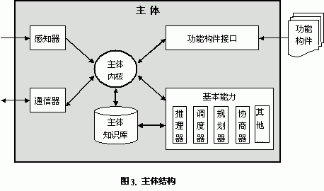 主体的基本结构主要由六大模块组成:主体内核(Kernel)、基本能力模块(Basic capabilities)、感知器(Sensor)、通信器(Communicator)、功能模块接口(Function modules)以及主体知识库(knowledge base)。具体结构如图3所示。